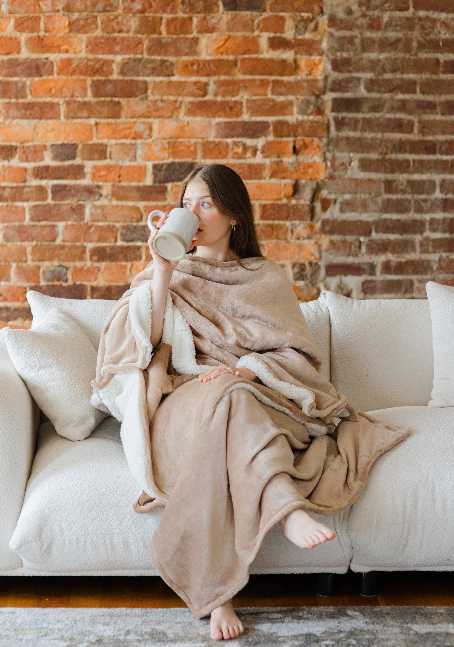 Indulge in Throobie's plush embrace with soft fleece on one side and luxurious sherpa on the other. You're free to choose the side that matches your mood.