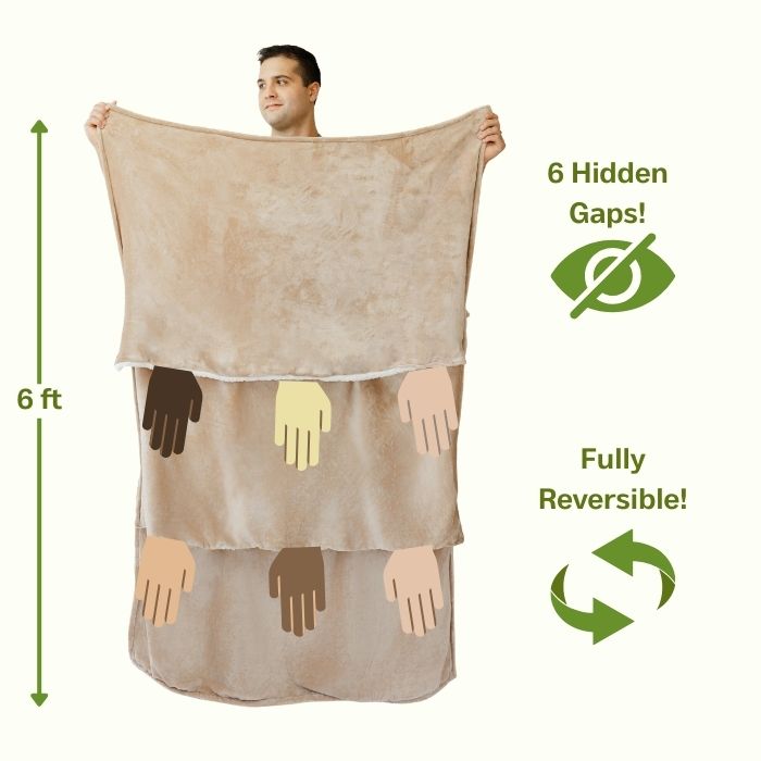 Throobie is not your average throw blanket. At over 6ft in length, nobody is too tall to enjoy it! Plus, it's fully reversible! As an added bonus, the arm holes are hidden on both sides!
