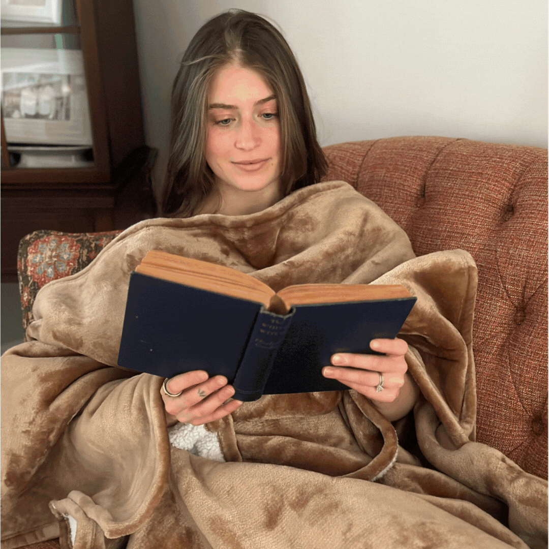 The days of sacrificing classiness for cozziness are over! Throobie combines the ellegance of a traditional blanket with a reach-through design for maximum comfort.